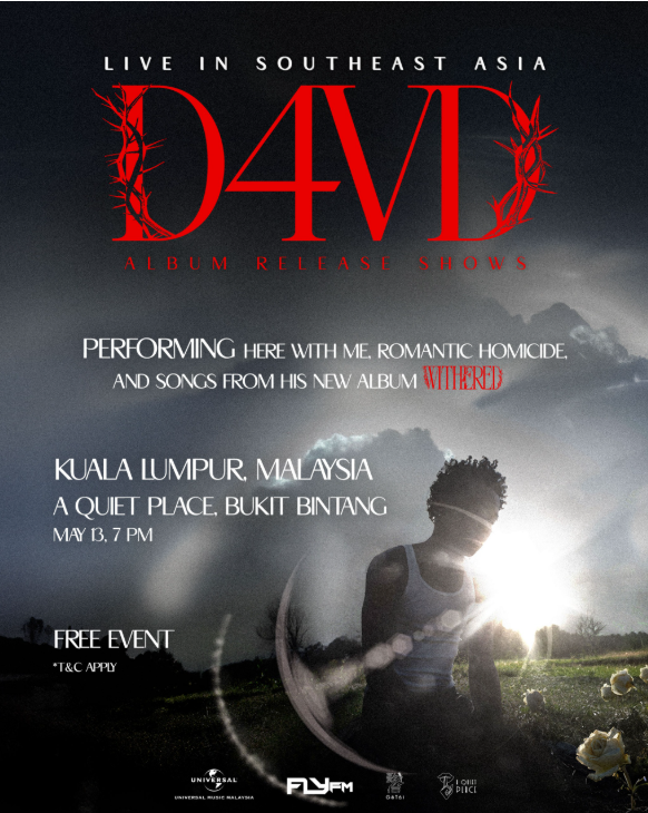 To celebrate the launch of his debut album WITHERED, d4vd will be performing at A Quiet Place, Bukit Bintang on 13 May.