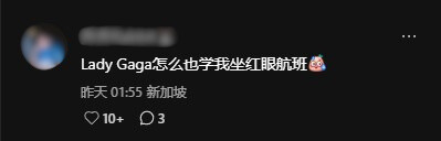 A Xiaohongshu video recently captured Lady Gaga boarding a commercial flight out of Singapore