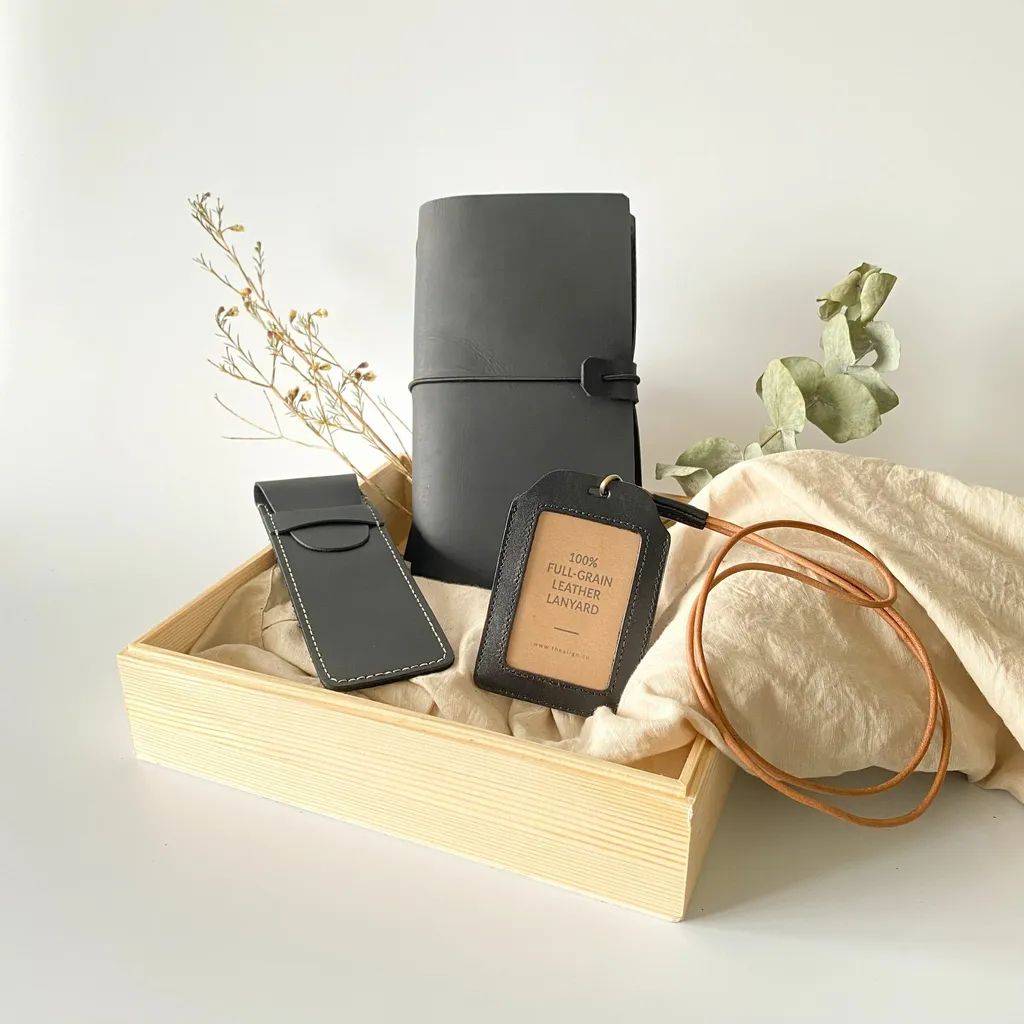 They have a range of leather gift sets from personalised leather journals, valet trays, cardholders, travel accessories, key organisers, and more. So you'll definitely find something for the traveller, coffee lover, writer, stationery fan, and etc.