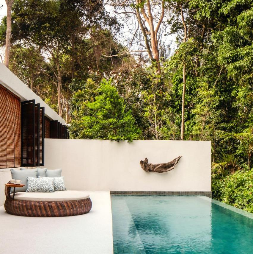 Guests can choose from 44 suites and villas, each generously sized with views of the rainforest or sea. Some come with private gardens or plunge pools — perfect for travellers who want privacy without missing out on the landscape.