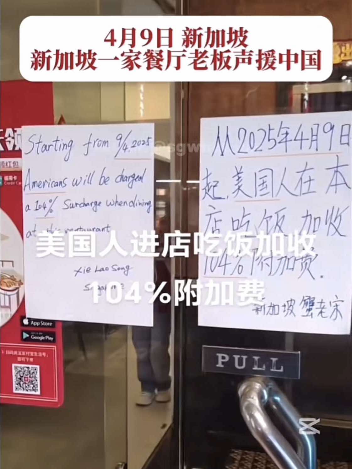 A Chinese restaurant in Singapore has denied responsibility for viral notices claiming it would impose a 104% surcharge on American diners