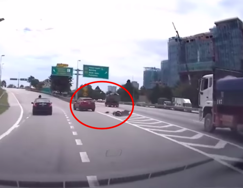 Dashcam Captures HRV Crossing 4 Lanes On The Highway And Crashing Into A Motorcycle