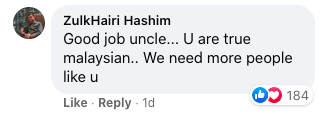 Another user said, "Good job, uncle. You are a true Malaysian. We need more people like you."
