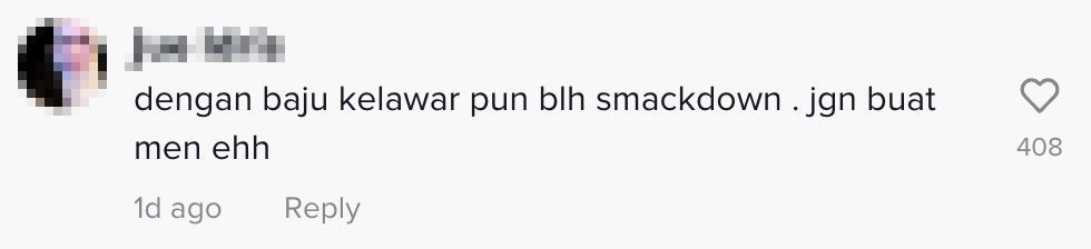 "Even in her baju kelawar (nightgown), she can do a smackdown. Don't play around," said a netizen.