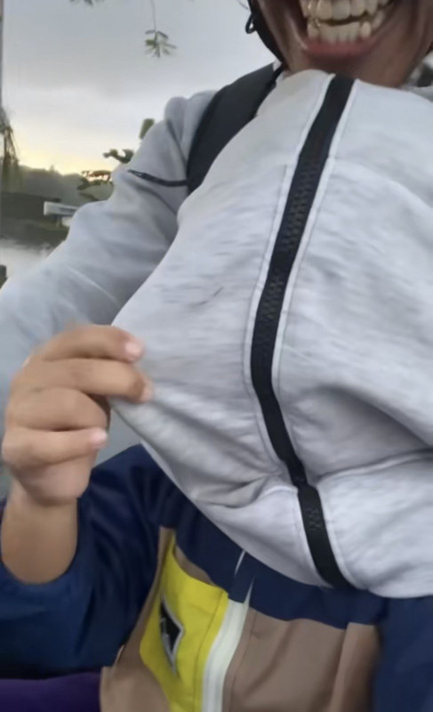 Apa yang menghiburkan adalah apabila lelaki itu bertindak 'menyorokkan' kepala anak buahnya di dalam baju kerana tidak mahu dia terkena hujan.