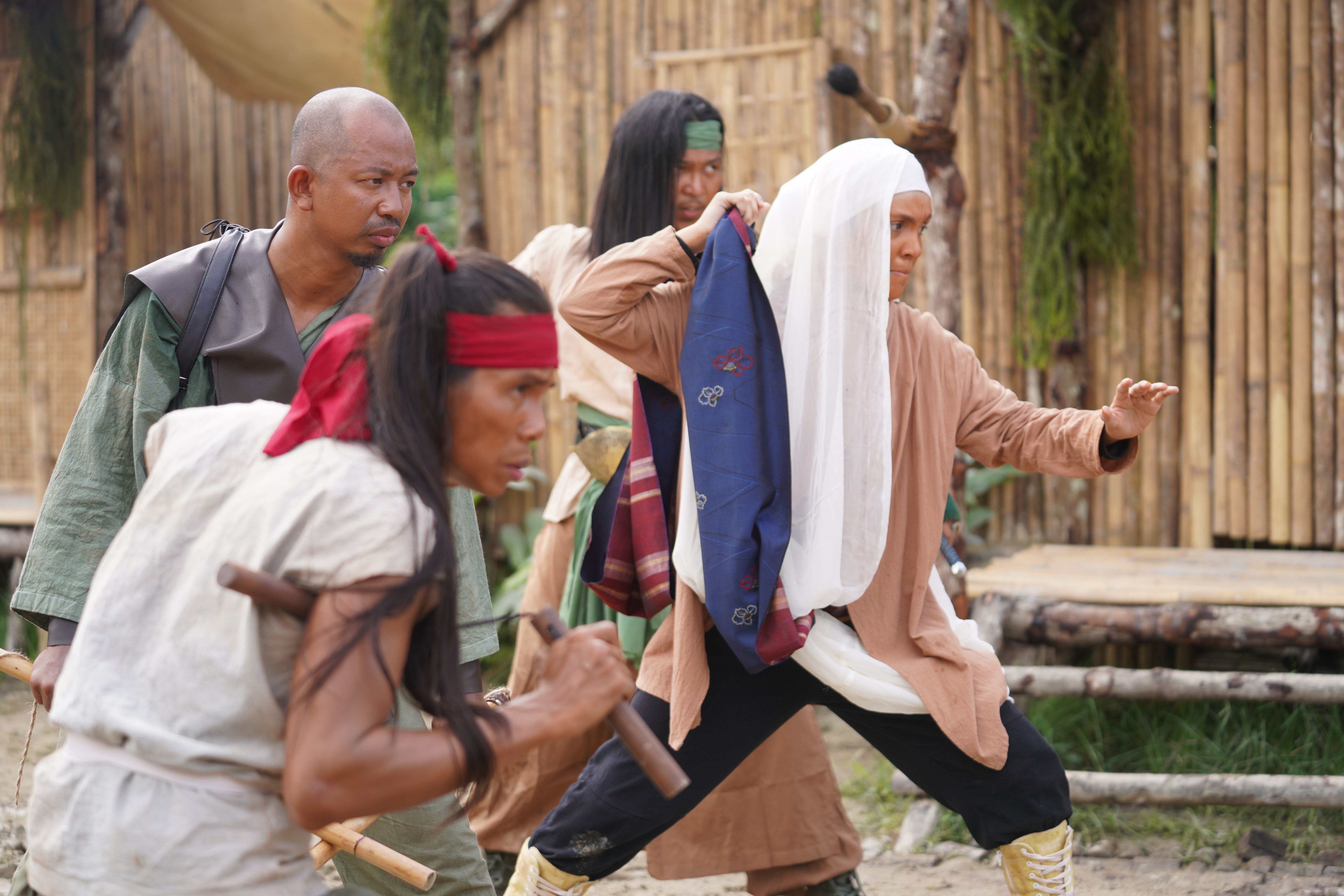 Aksi pertarungan yang digarap dengan elemen seni silat dan senjata tradisional Melayu