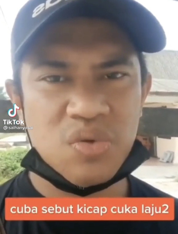 Menerusi video yang dimuat naik oleh @4ksaiii, kelihatan lelaki itu sedang cuba untuk menyahut cabaran menyebut perkataan kicap dan cuka dalam nada yang laju.