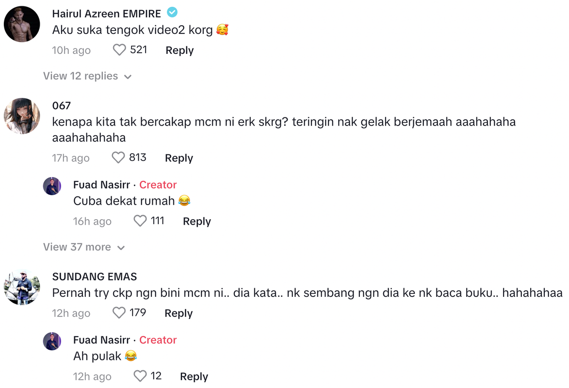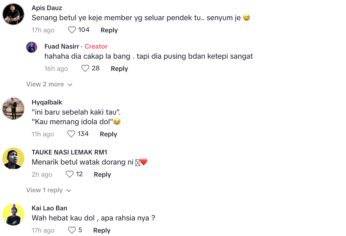 Berikut di bawah adalah antara komen menarik daripada warganet di TikTok: