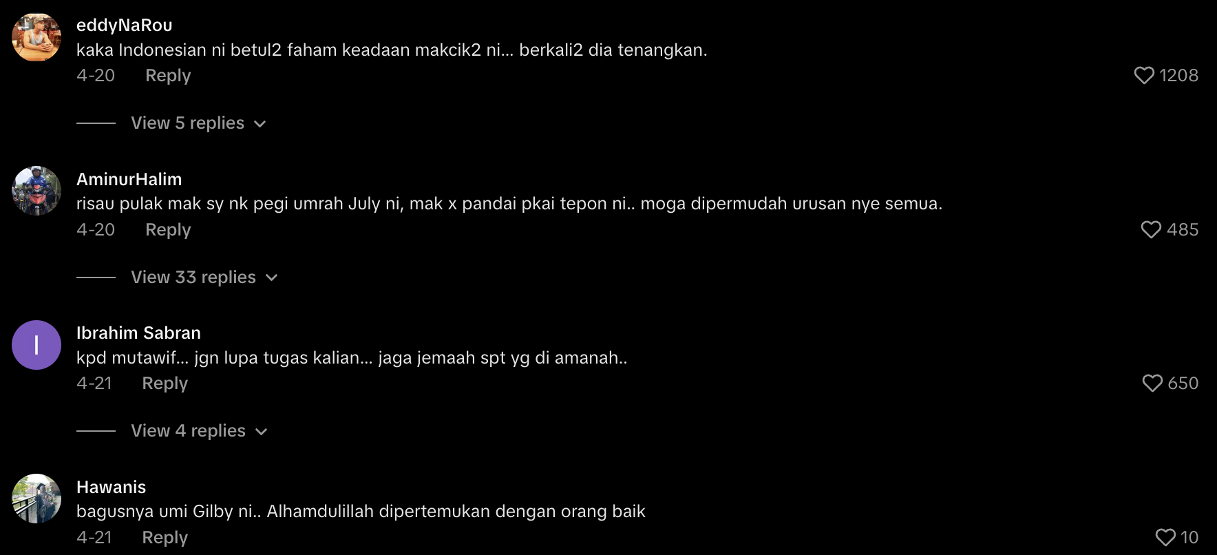 Antara komen-komen daripada netizen di TikTok: