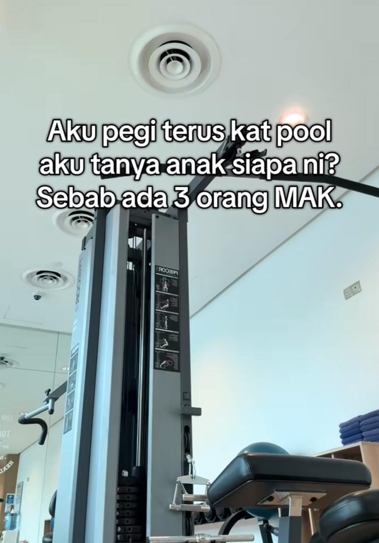 Menerusi video yang dimuat naik oleh @iamkayrashid, kelihatan wanita tersebut sedang work out di gym itu yang terletak di sebelah kolam mandi.