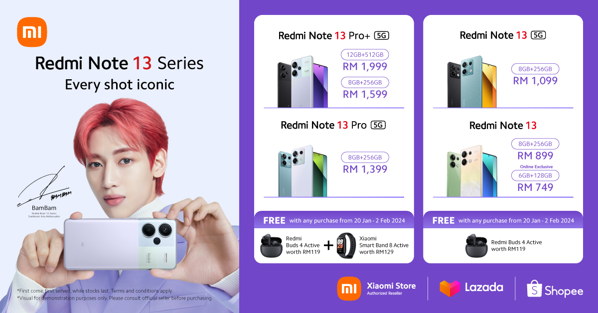 - Promo: FREE Redmi Buds 4 Active (worth RM119) and Xiaomi Smart Band 8 Active (worth RM129)